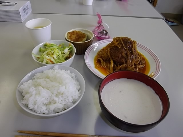 今回は煮込みハンバーグ定食を作りました。