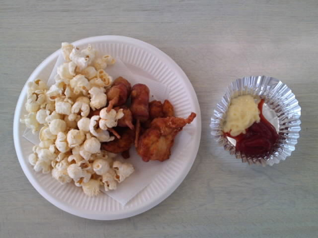 やきそば、やきとり、ちらし寿司、ポップコーン、わたがし、フルーツポンチ、かき氷、冷やし汁粉、チョコバナナ、ジュース、ヨーヨー釣り、が出店。全部食べたらお腹壊しそうなくらいたっぷりありました。